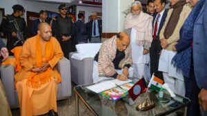 Defence Minister Rajnath Singh inaugurated the first all-girl Sainik School in Vrindavan,...